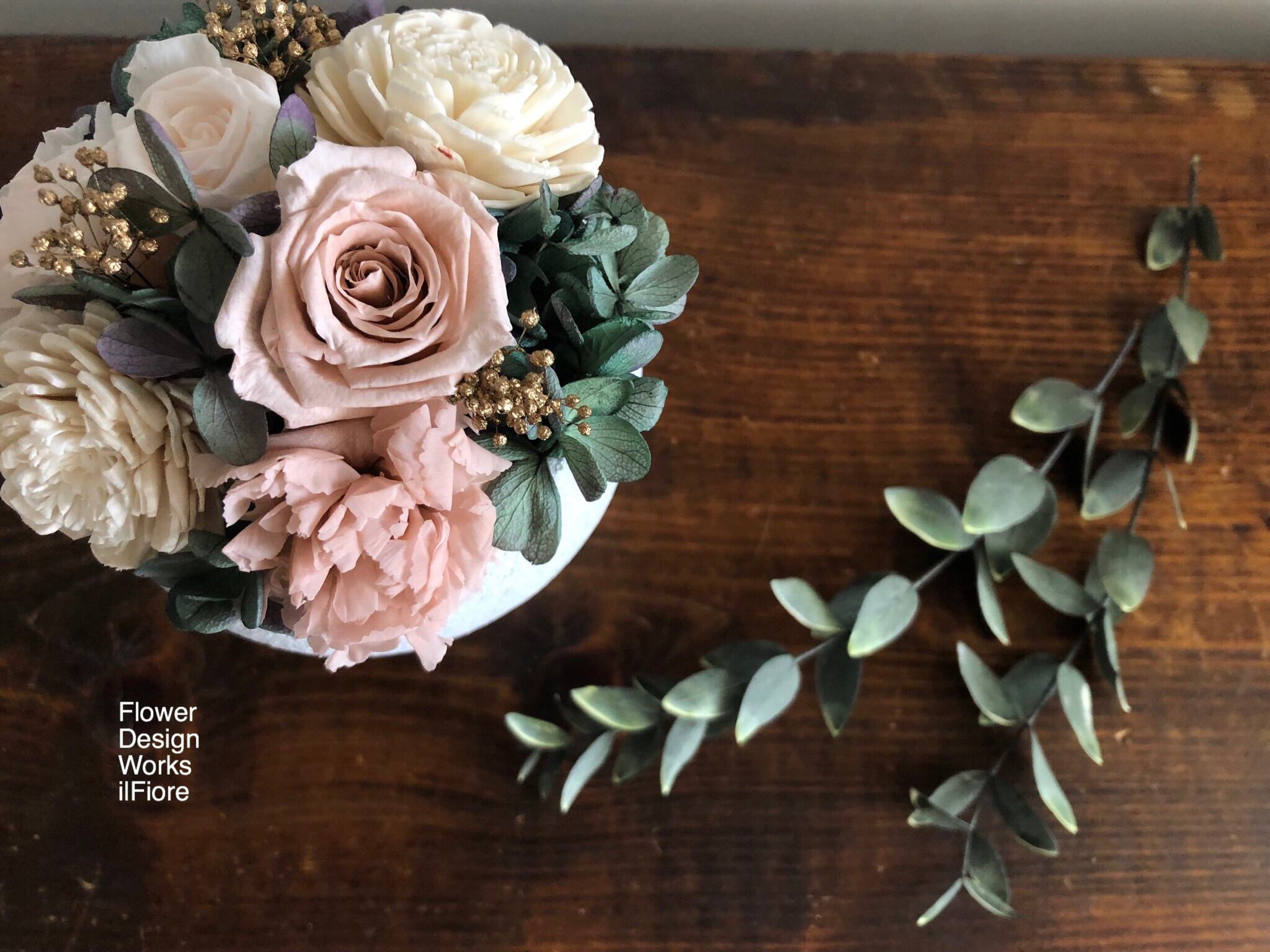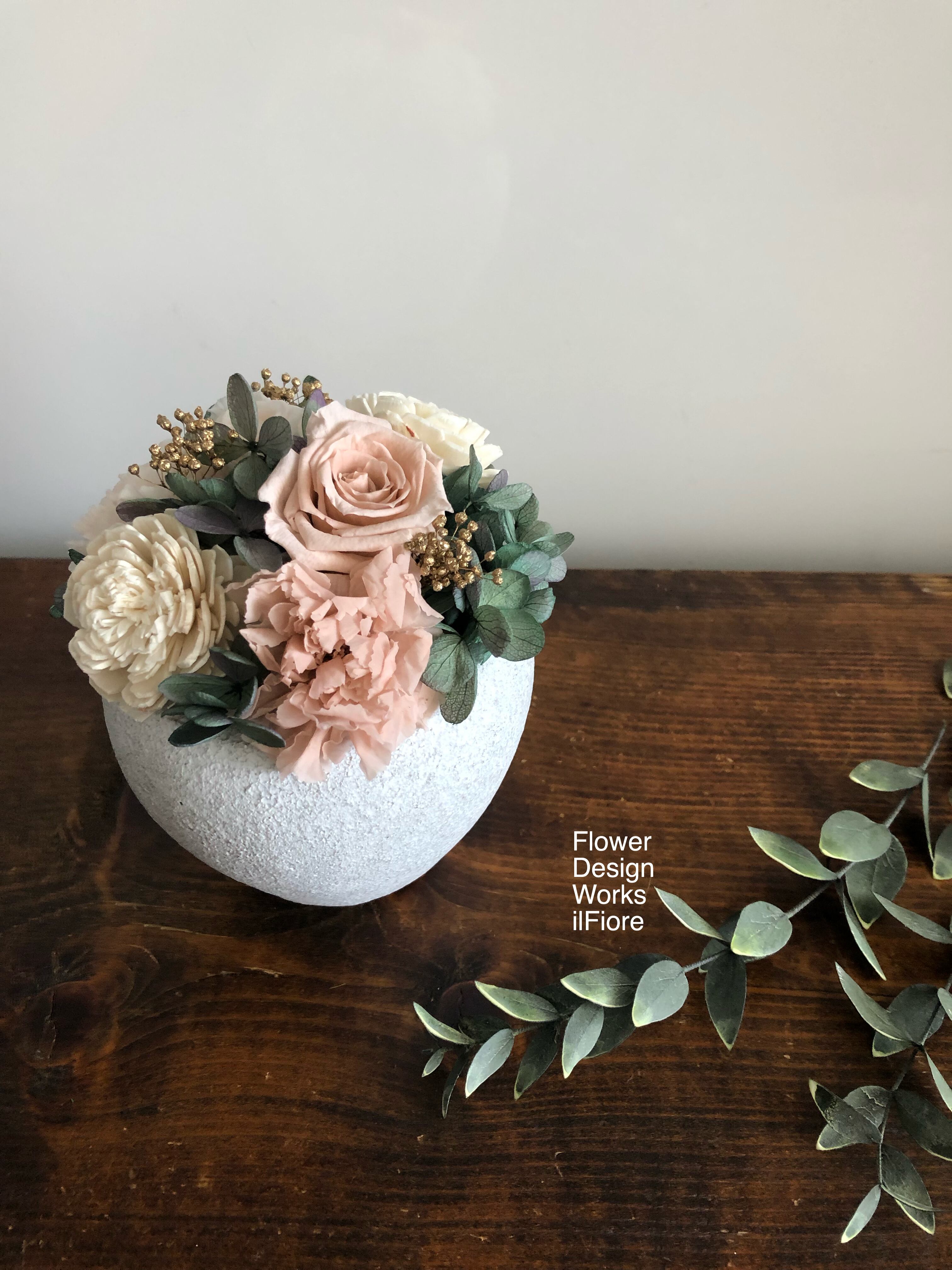 ◆花材:ローズ・カーネーション・ソーラーローズ・アジサイ・カスミソウ