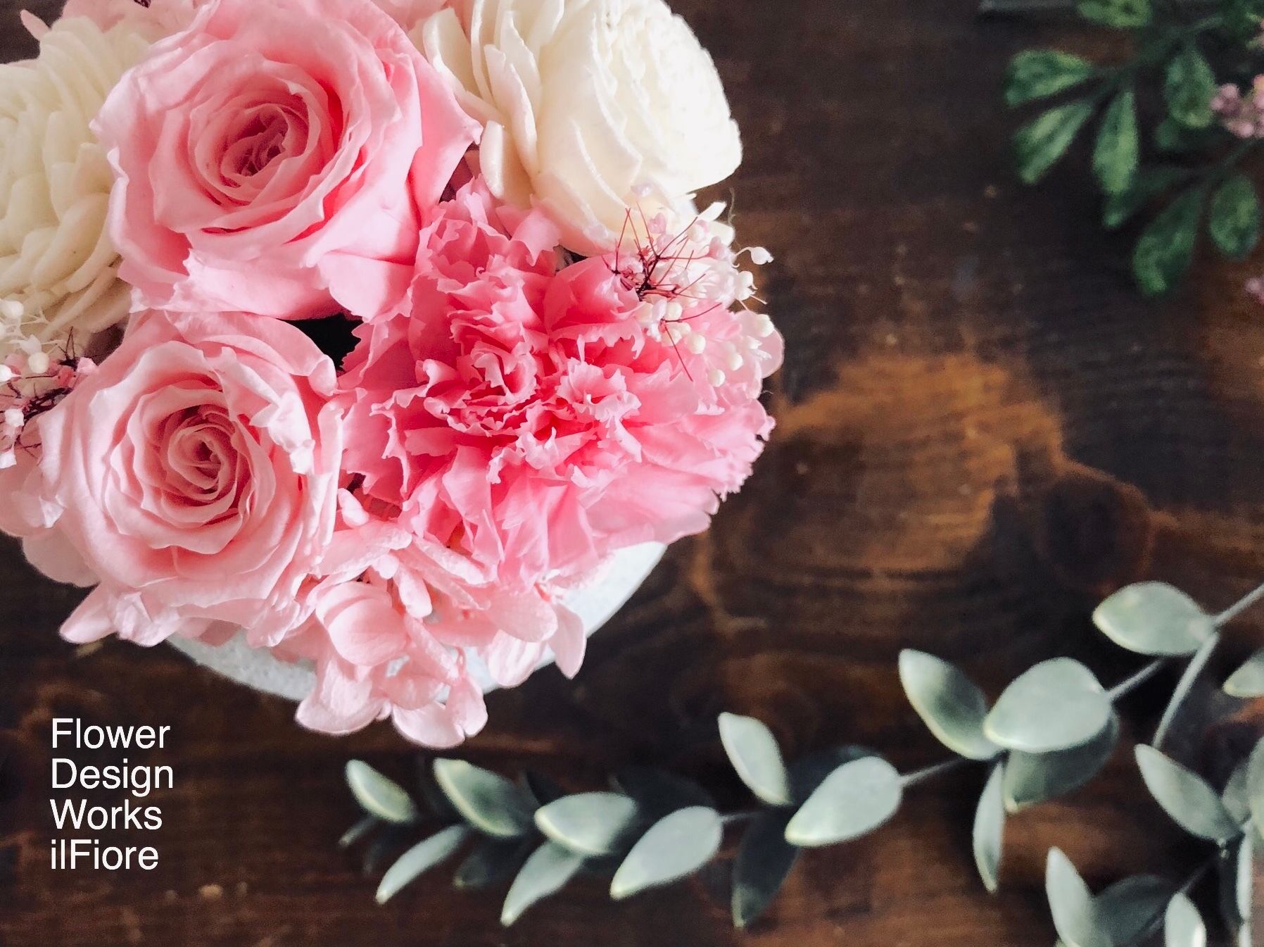 ◆花材:ローズ・カーネーション・ソーラーローズ・アジサイ・カスミソウ